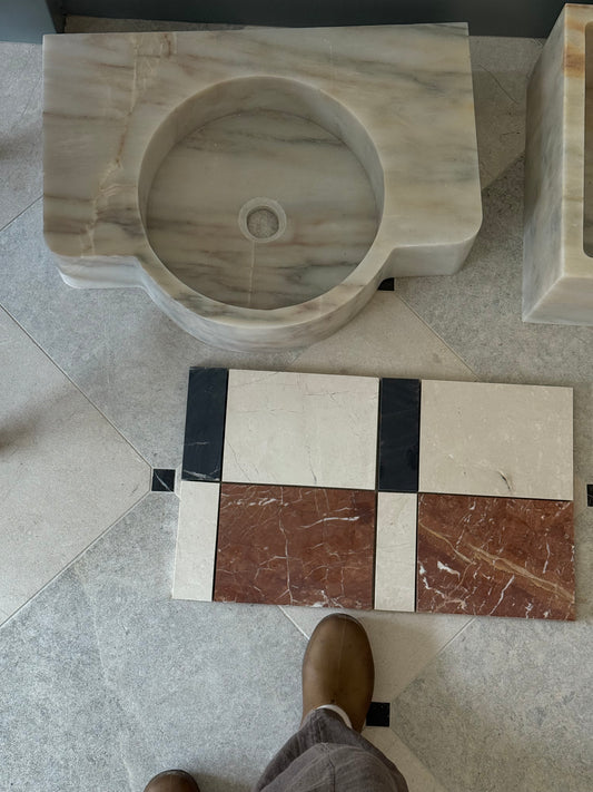 Custom Mosaic Flooring (Cream, Brown + Red)
