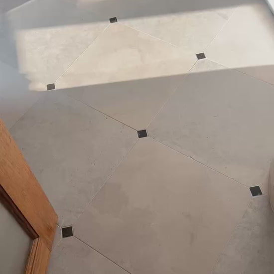 The exact checkered marble flooring featured in the SBJ office and Jaclyn's home. This is our most requested tile, a customer favorite for its timeless appeal and elegant contrast.